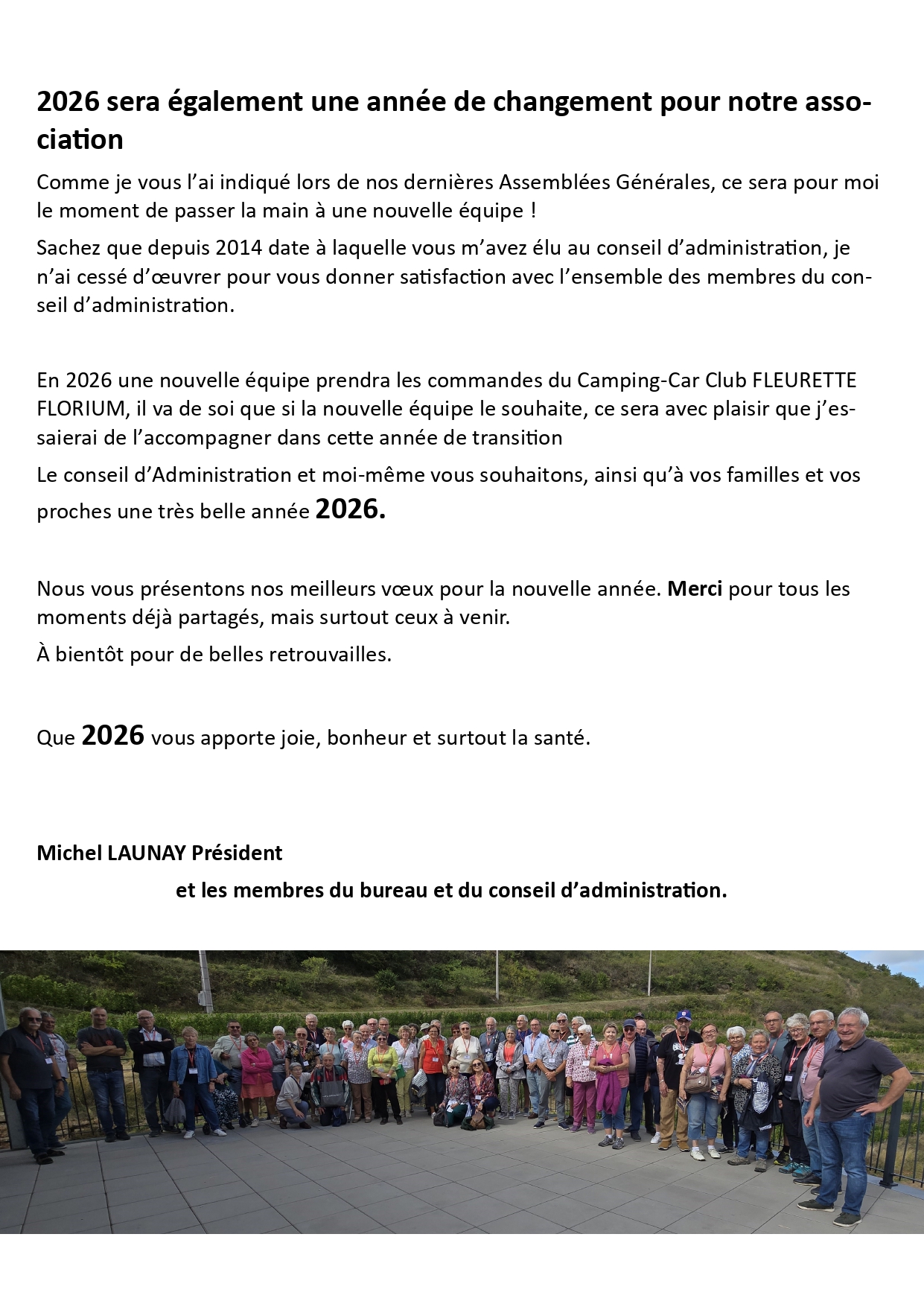 Si vous êtes possesseur d’un camping-car Fleurette ou Florium, que vous êtes intéressé par nos informations techniques et culturelles, vous pouvez demander votre adhésion en imprimant la fiche de demande d’inscription que vous trouverez dans la partie du site « NOTRE CLUB FLEURETTE FLORIUM » qu’il vous suffira d’adresser à l’adresse postale qui est indiquée.